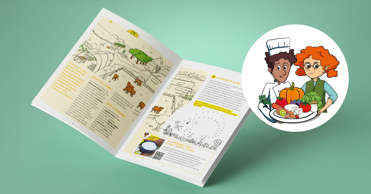 - création de flyers, de plaquette de programme.création de personnages mascottes qui permettent à la fois l'identification des enfants et qui collent à l'image d'un cuisinier et d'une agricultrice